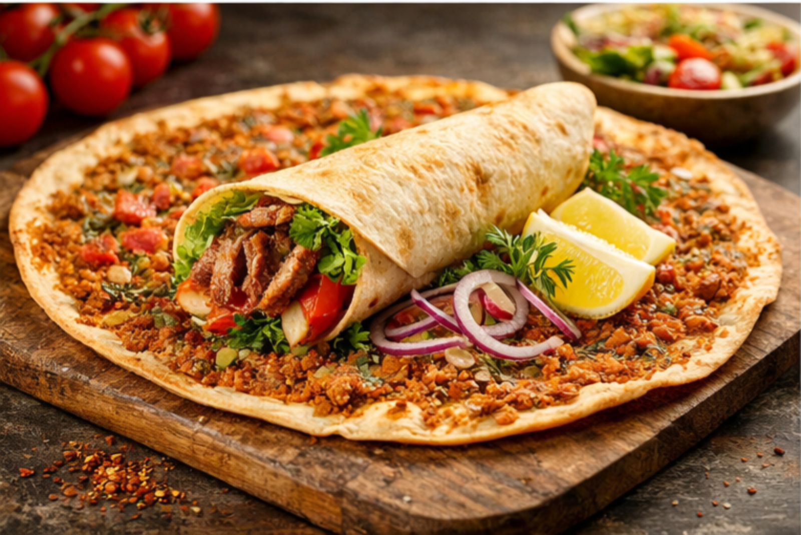 mit Dönerfleisch, Salat und Soße